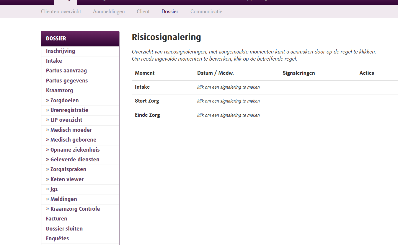 Werken jullie bijvoorbeeld met een software systeem waarin antwoorden op vroegsignalering vragen automatisch kunnen worden ingevuld of met ingestelde reminders of met automatische memo's?